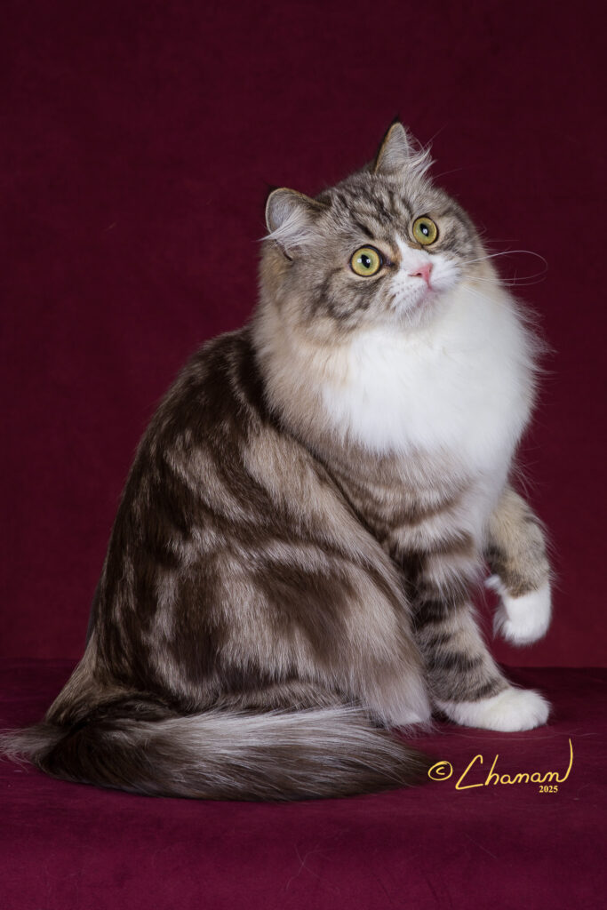 Rivers is a natural mink classic and white with a purrfect muffin face, super soft non matting coat. He has sired some beautiful kittens and is the fun dad that plays with all with the babies.